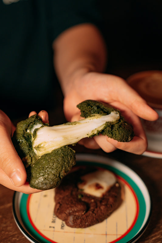 黑朱古力軟心曲奇 配杏仁及煙靭麻糬